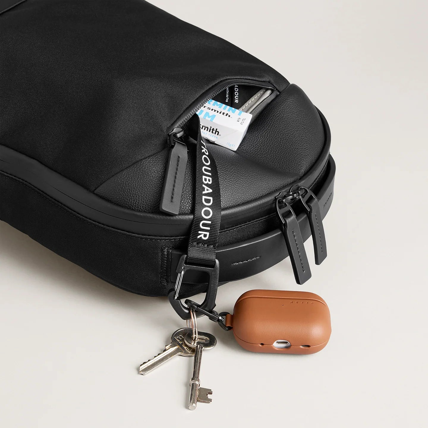 Quick-access origami quiver pocket: A stretchy pocket on your shoulder strap keeps your card or phone essentials in reach